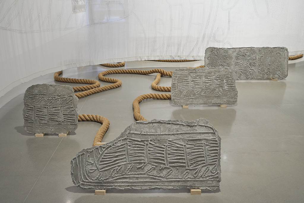 Mariana Castillo Deball’s anthropological gaze is focused on work, on matter, on nature, the places of choice for her research are anthropology, archaeology, paleontology, museums and collections of applied arts and those of science, wherever objects can be found, tools that are the result of craft and traditional production processes that incorporate technical knowledge of collective cooperation, objects with which the artist interacts, adopting, adapting, translating and appropriating them to tell a relativized story while reforming the Eurocentrism of History. Mariana Castillo Deball liberates the intangible essence of objects by freeing them both from their use and exchange value for which they were made in their communities of origin, and from the positivist classification of museums or collections in general, redesigning spaces. Castillo Deball well knows that putting or putting things back to their place confirms the social and cultural order established; so, she moves things as far away from their agreed places as possible. Liberating objects by turning them into things is a ritual practice of Castillo Deball’s art to free the thought, to make it breathe and have a more natural relationship with the surrounding world. Mariana Castillo Deball’s work by reasoning and deliberating about things, represents a curious or rather surreal study of material culture, since objects inform our lives, our politics and indications of gender. Castillo Deball’s work with practical reasoning also focuses on waste. Someone said that man is a ravenous being even of future hungers, which have put and continue to seriously endanger the ecological life of our planet Earth. What the past and the present have in common regarding material culture is the disposal of objects once they are no longer used, but unlike the present, in the past there was a scarcity of objects that moreover were organic, and the death of an object coincided with its inability to be repaired once broken: the value was saving not consumption. Today the death of an object often occurs long before its irreparability, and our civilization is based on the consumption of not only having but also being.