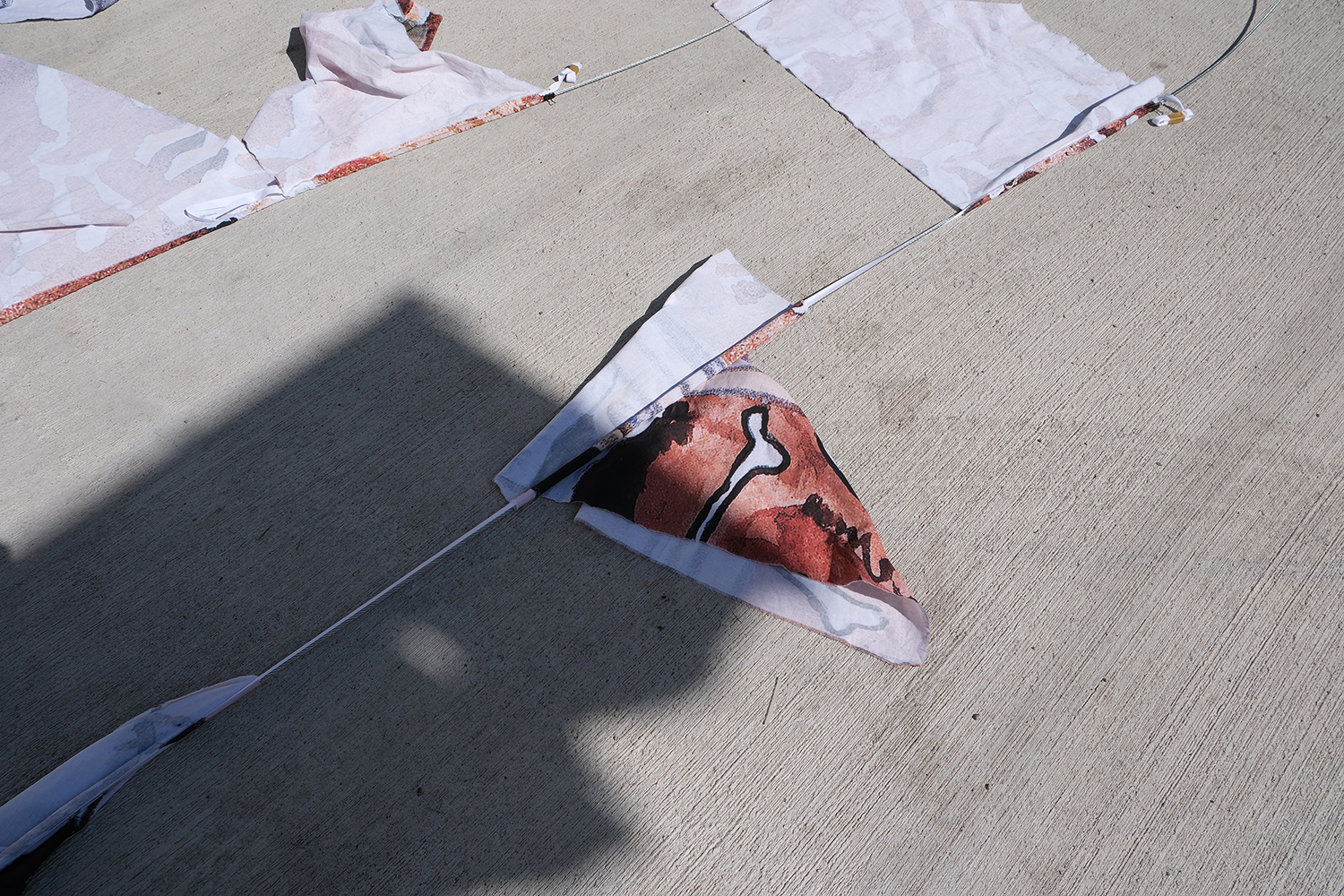 Inspired by local archaeological sites, artist Mariana Castillo Deball has created a public artwork that plays out across the streets of Eastbourne, into Towner Eastbourne's gallery building and out to the South Downs. Walking through the town I followed a pattern on the pavement that became the magnified silhouette of a woman's profile is, explains Castillo Deball, "a work that can be experienced as an image, a walking path or a narrative". On this two-hour walking route around the streets of Eastbourne, pedestrians will discover a chalk-stenciled rope that traces an unexpected route through the town, outlining the silhouette of a woman's profile. Followers of the walking trail will encounter several sculptural objects embedded in the pavement, each relating to objects that were buried with The Frankish Woman, whose ancient remains were discovered in Eastbourne at the Anglo-Saxon cemetery on St Anne's Hill. The locations for the objects are shown on the map as a loop in the rope. A third element to the work takes place at Whitbread Hollow on the South Downs where the shape of a giant hairpin, the most magnificent of the funerary objects, will be inscribed in chalk. In contrast to the nearby Celtic hill figure, The Long Mari of Wilmington which is cut into the chalk a few miles north-east of Eastbourne, Castillo Deball's geoglyph will be evanescent, disappearing over time. Visit towner.gallery/CreativeCoast for more details on this work and how to see it. Alongside her Waterfronts commission, Castillo Deball has curated an exhibition for Towner Eastbourne. A drawing, a story and a poem go for a Walk will run from 29 May 2021 to 16 January 2022.