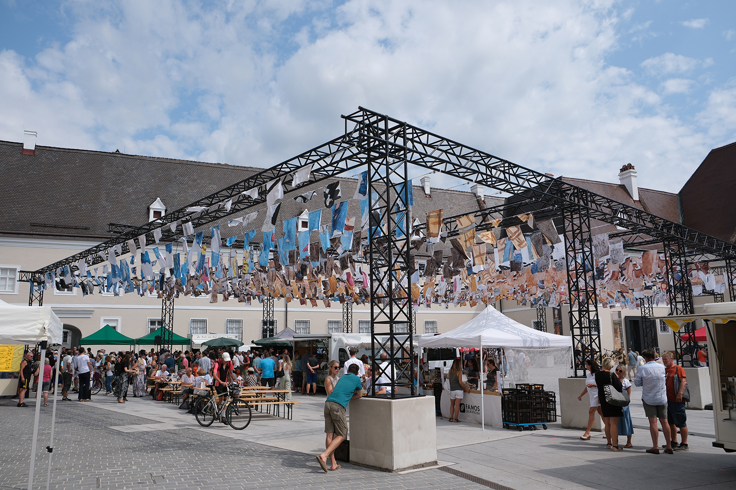 In the 14th century, European workshops began turning old clothes into paper, making it far more accessible than the parchment used previously. Rag collectors played an important role in sourcing materials, even extracting textiles from burial sites, sometimes leading to outbreaks of disease. Deball's work encourages viewers to think about the balance between preservation and decay and the stories that everyday objects tell about our identity and history. "Dead, I am Still Paper" awakens a deeper connection with the past and an awareness of the fragility of memory. And last but not least, it provides welcoming shade in a central location in the city.