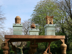 In the bee-friendly city of Bruges, the artist collaborates with Biesous/ Margot Hinnekens and Uther Smis, an initiative of young bee keepers from the region, who care for the bees during the five months of Spaces of Possibility. The project is done with respect to the bees' wellbeing and the biodiversity in the park and the city. They will continue to take care of the bees after the end of the Triennial, when the artwork will be dismantled. Some of the elements of the structure will be donated to the apicultural circuit in Bruges, continuing their lives in the region.